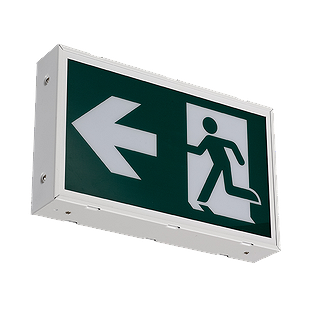 “Running Man” LED Emergency Sign, White Metal Housing Ni-cd battery backup for 2 hours